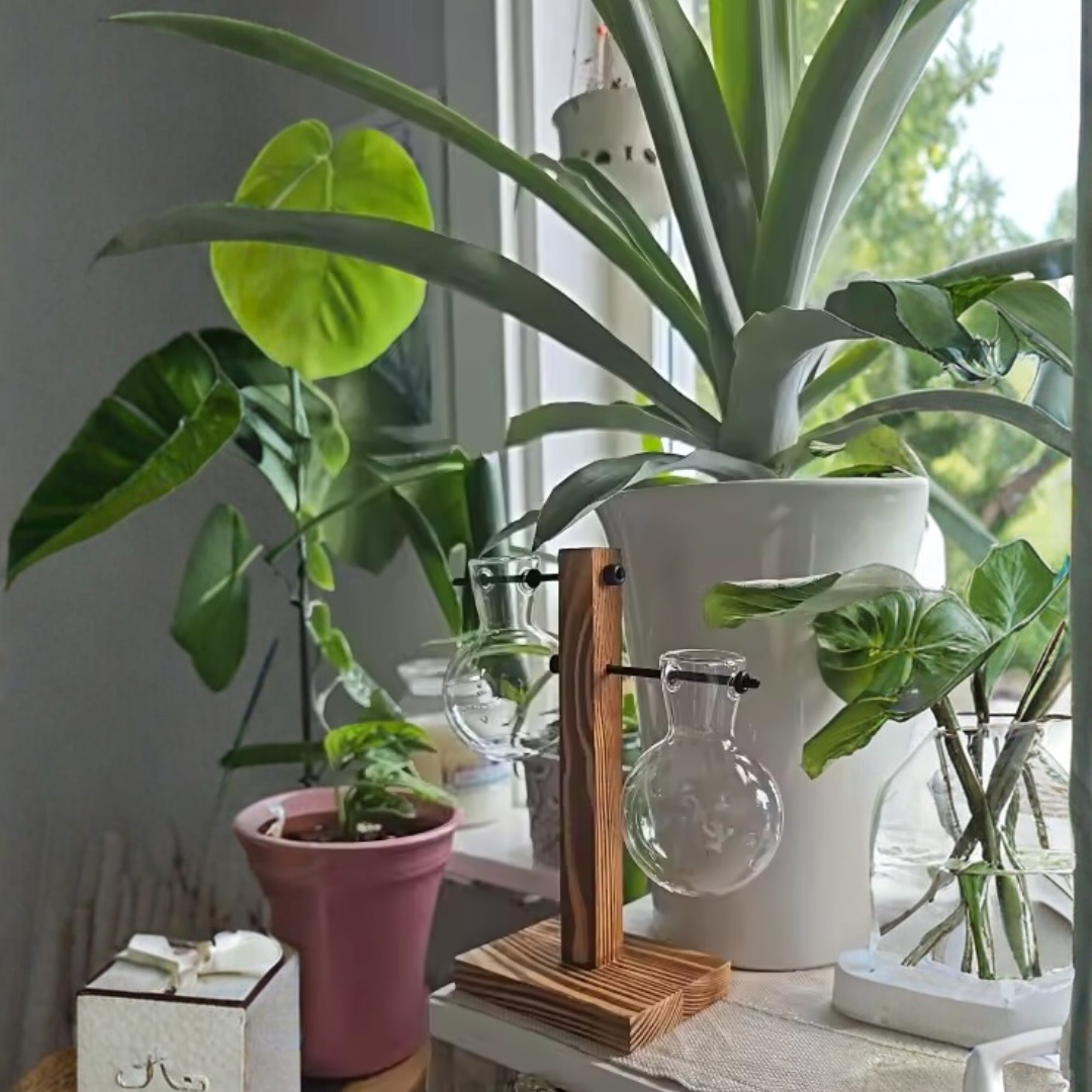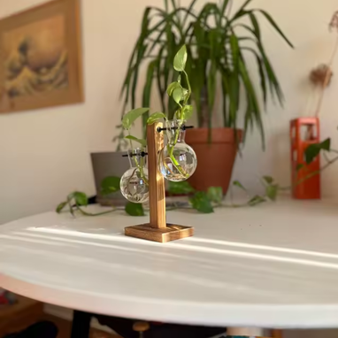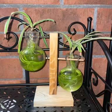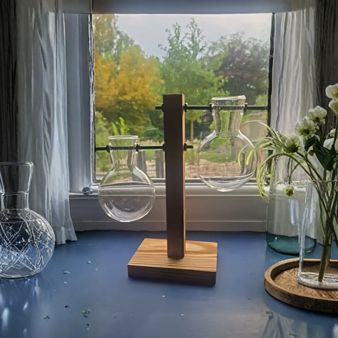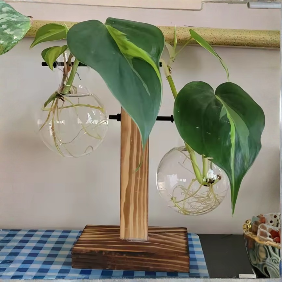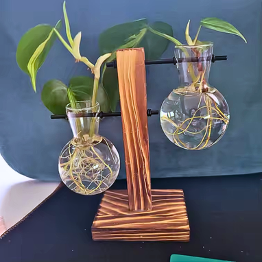 Glass Bulb Hydroponic Planter with Wooden Stand